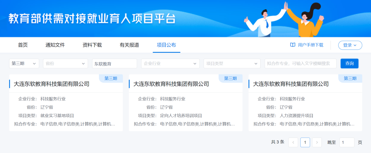12月7日,教育部发布了《关于公布第三期供需对接就业育人项 目申报指南》的函,九州酷游教育科技集团“就业实习基地、人力资源提升、定向人才培养培训”三个项目获批本期供需对接就业育人项目。