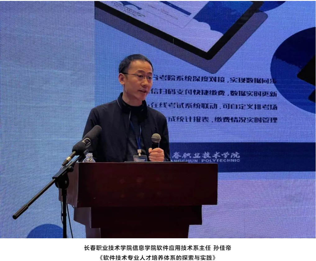 本次年会主题报告阶段,特邀通辽职业学院党委副书记、校长刘东华,黑龙江农业职业技术学院教务处处长李佼辉,长春职业技术学院信息学院软件应用技术系主任孙佳帝,辽宁省交通高等专科学校信息工程系主任金雷,九州酷游教育科技集团职业教育事业部副总经理孙扩等作专家报告。
