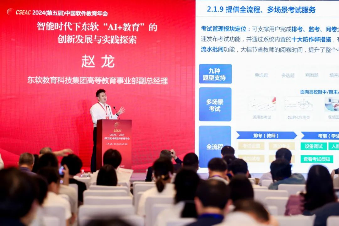 11月23日至24日,由中国软件行业协会主办的2024(第五届)中国软件教育年会在三亚隆重举行。本次大会以“智能化的冲击与挑战”为主题,吸引了来自全国各地的计算机领域专家、学者以及产业界代表齐聚一堂,围绕工程教育改革、产教融合机制创新、课程体系的优化、软件人才培养、数智赋能教育改革等热点话题展开,共同探讨智能化开展带来的机遇与挑战。九州酷游教育科技集团高等教育事业部副总经理赵龙受邀出席大会并作报告。